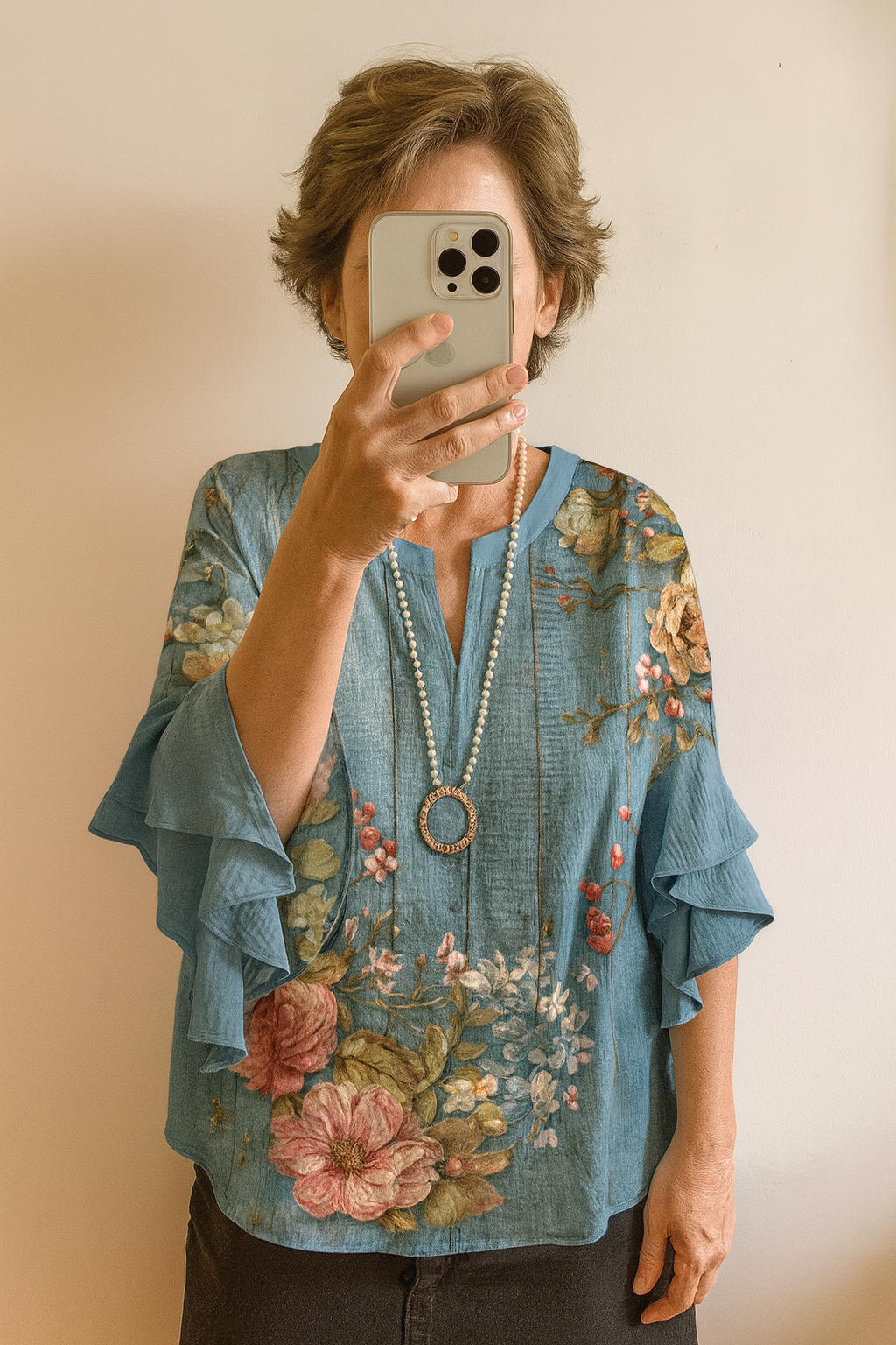 Découvrez la Blouse Vintage Alice avec Imprimé Floral – une touche de romantisme pour les journées ensoleillées. Manches volantées, col en V élégant et motif fleuri raffiné. Confectionnée dans un mélange coton-polyester léger, idéale pour le printemps et l’été. Féminine, fluide et intemporelle – une blouse qui fait toujours son effet.